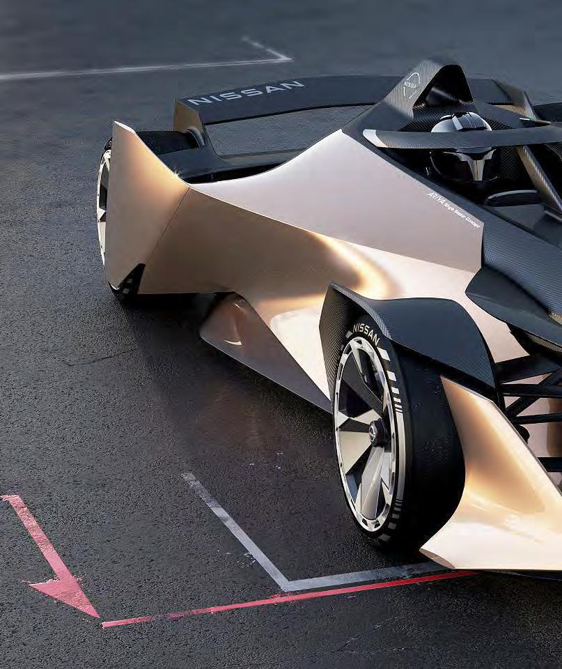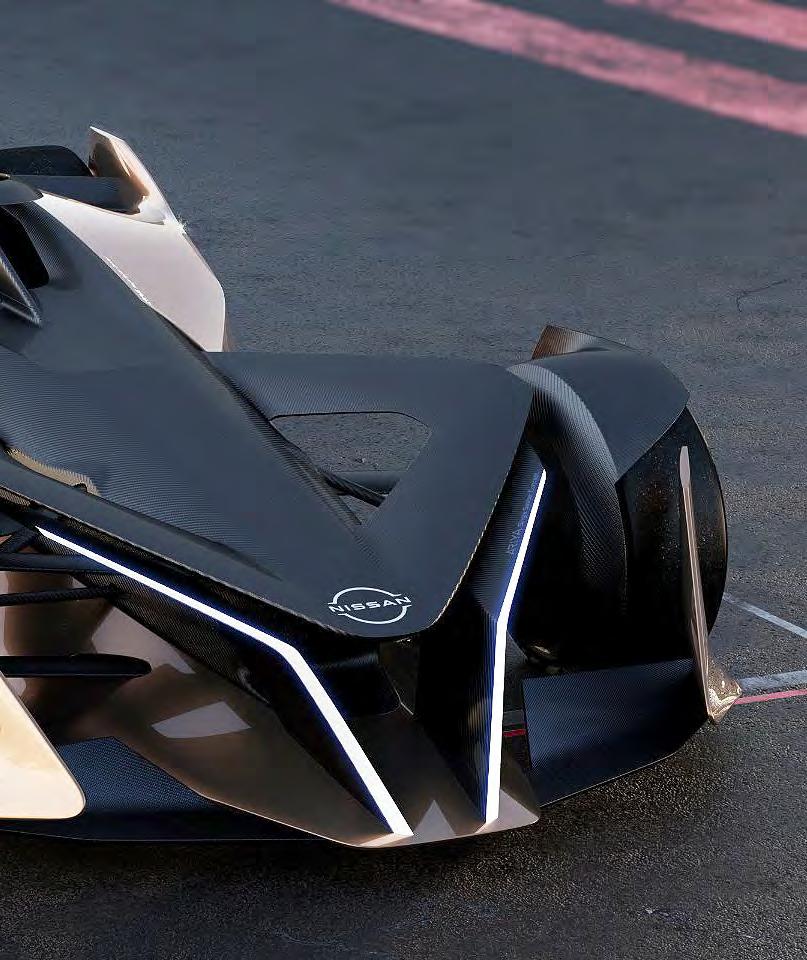 At the front of the vehicle is the electrified and illuminated V motion, familiar from Nissan’s current road car design language. At the side view, inspiration has been taken from the Ariya’s fluid and efficient surfaces, exaggerated to a maximum in carbon fibre. Overall, the Nissan Ariya Single Seater Concept describes a form that, as with the Ariya, looks like it was shaped by the air itself.