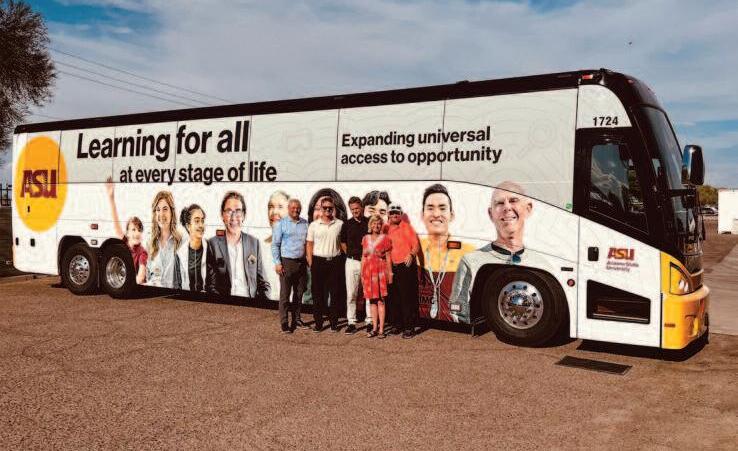 MCI and Arrow Stage Lines, a premier g r o u n d t r a n s p o r t a t i o n s e r v i c e p r o v i d e r, h o s t e d a c e l e b r a t i o n t o i n t r o d u c e i t s 2 5 n e w l y d e l i v e r e d M C I h i g h - p e r f o r m a n c e J 4 5 0 0 c o a c h e s a t t h e i r P h o e n i x , A r i z o n a facility Paul Soubr y, president and CEO of NFI; Aram Nikitas, regional vice president for MCI and MCI’s skilled service and suppor t team joined the event to congratulate the Arrow Stages Lines team on this incredible milestone