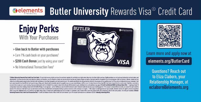 This edition of Butler Magazine also celebrates milestones that remind us of the impact our University has on the lives of so many. From the 10-year anniversary of Butler Bound admission decision visits to the successes of alumni like Jamie (Pierce) Fahrner ’05 and Paola Ariza-Storch ’23, these stories underscore the transformative power of a Butler education. Additionally, stories of student leaders, researchers, and artists highlight the dynamic talent that propels our community forward every day.