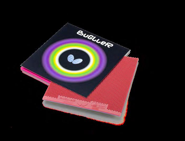 Bugllers einzigartige Kombination aus einer Noppenform, die für große Spinvariationen ausgelegt ist, und Spring Sponge X ermöglicht es, unberechenbare No-Spin-Bälle zu produzieren, die den Gegner aus dem Takt bringen. Die innovative High Tension Technology von Butterfly ermöglicht es Spielern, mit Bugller auch unerwartet schnelle Bälle zu spielen.