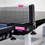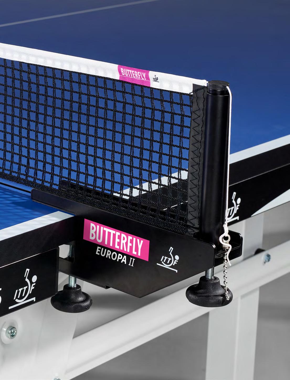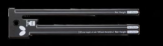 ITTF-zugelassen. Sehr stabile Metallgarnitur. Große, handliche Befestigungsschrauben mit schwarzem Netz, inkl. Netzlehre in Kartonbox.