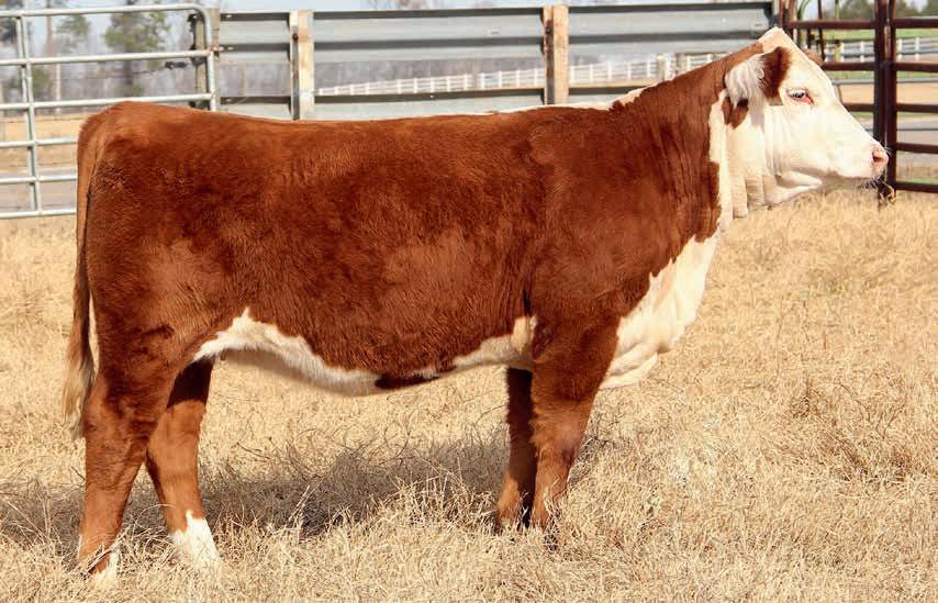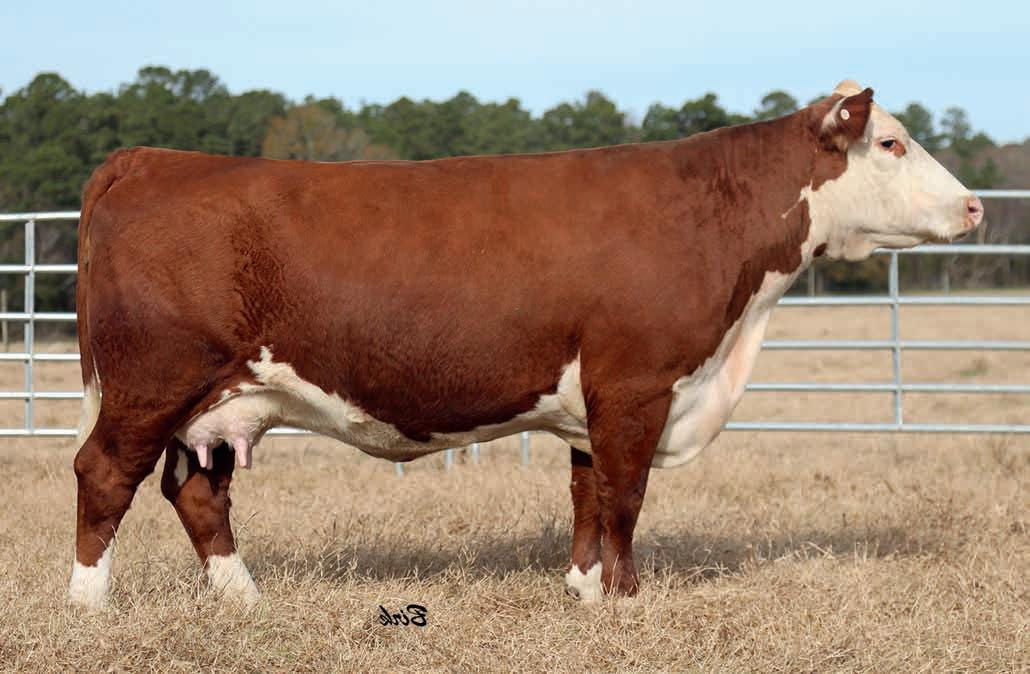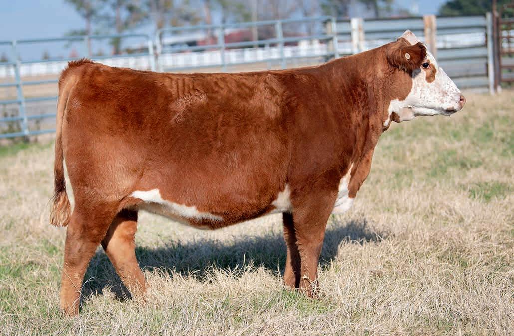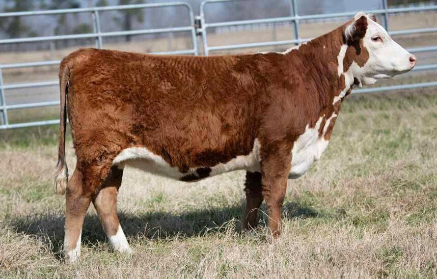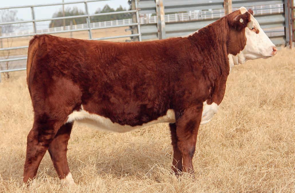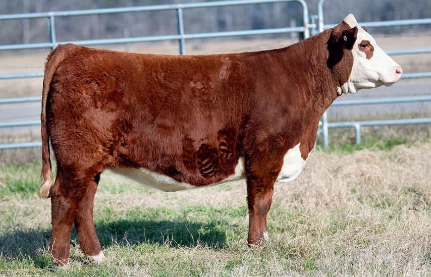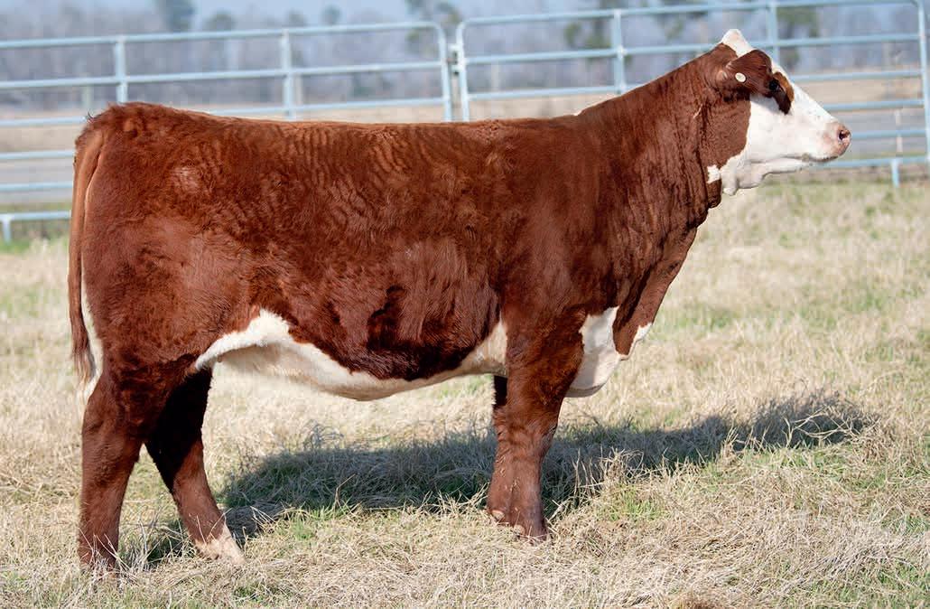 • This young cow offers a lot of resemblance to Arsenal in terms of body type and rib design. High CED, plenty of growth and carcass quality. Will calve before the sale to an outstanding son of Liberty 159H.