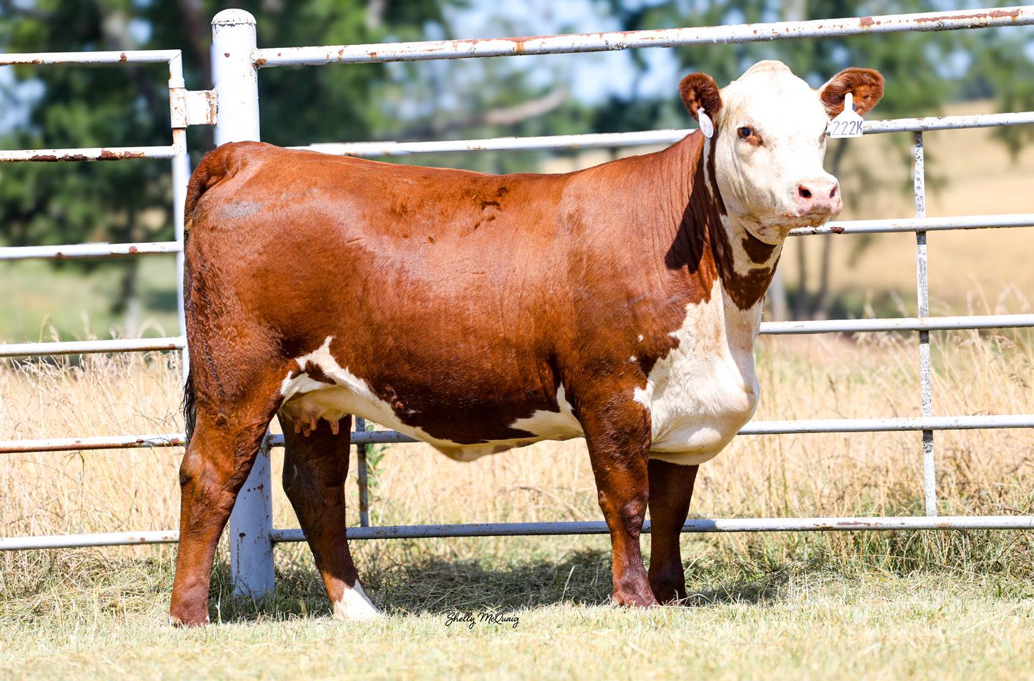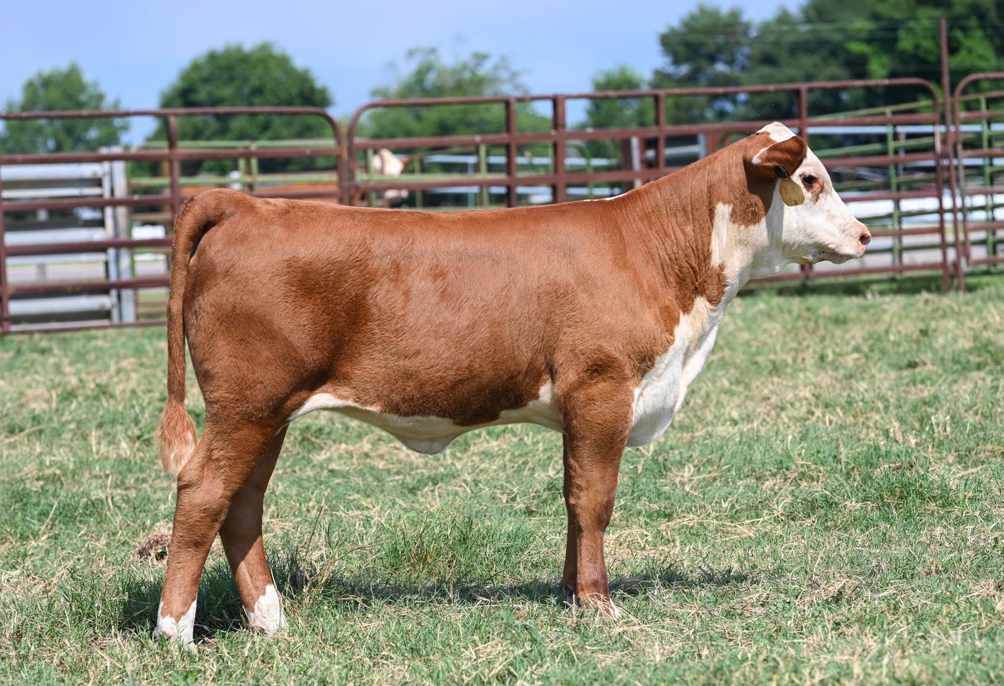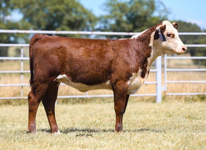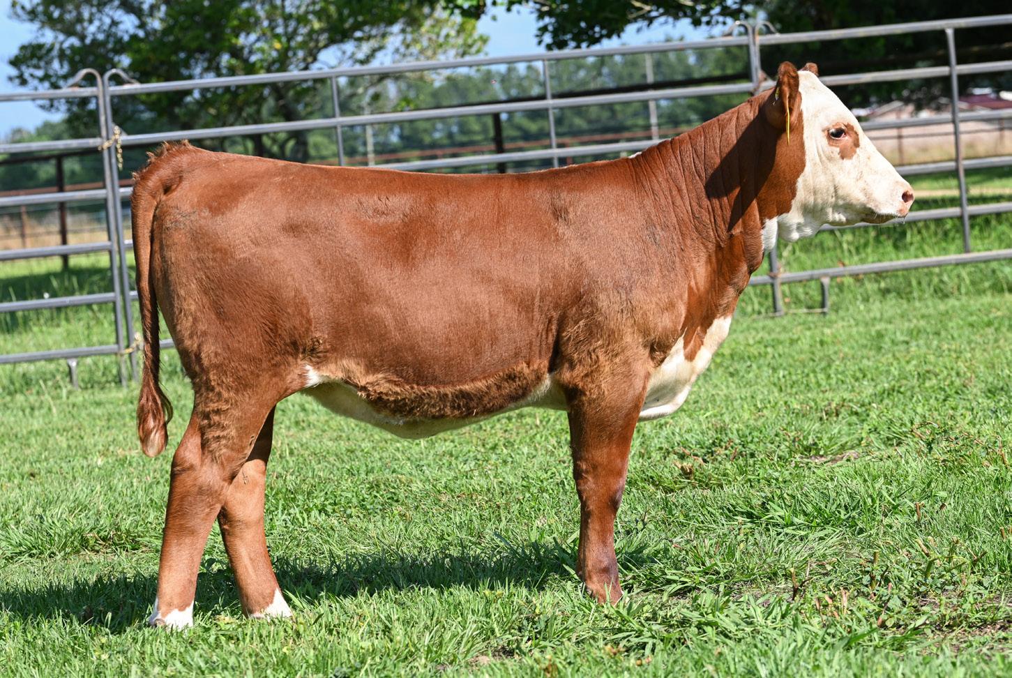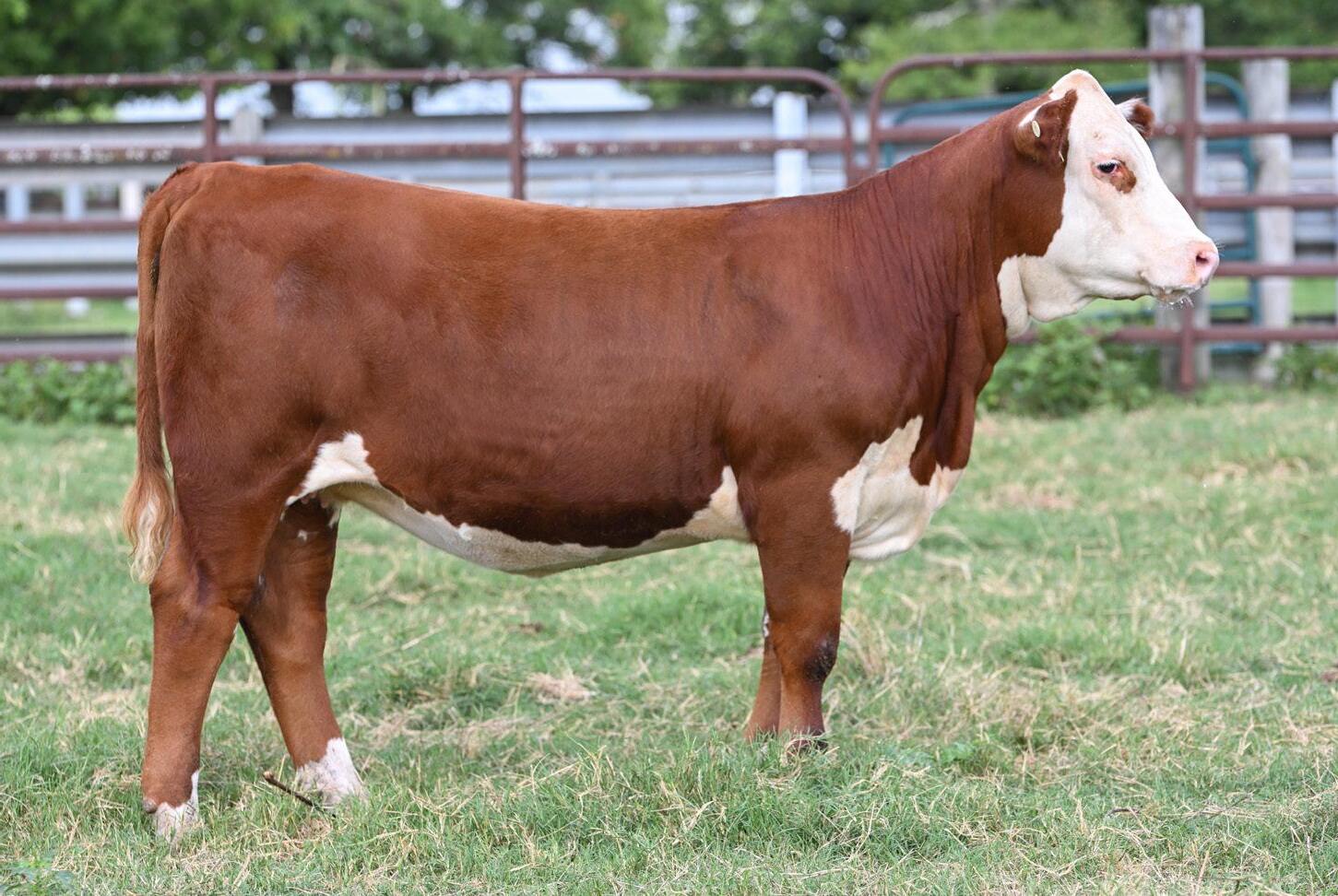 Genesis has been super good to us at Barnes Herefords and this young female is proof of that with the added depth of side, fleshing ability and added pigment that his progeny command. We sure are proud of this female and think there are a lot of good things you can do with her. We look forward to seeing what she produces from her mating to Audacious.
