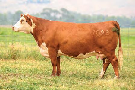 Ou t of the incredible 5022 donor, who is also the dam of Vanguard. She is one of the top BMI$ cows in the breed. Arguably the best 028X daughter anywhere. “D ynamic” phenotype, short marked and fully pigmented. Ow ned by Birdwell Ranch.