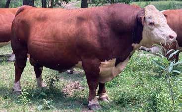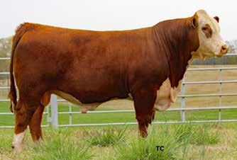 This bull is built stout from the ground up. Big footed and big boned and carries his thickness down his top and through his hip.