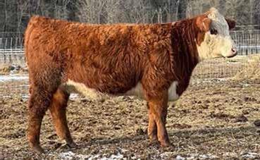 • Her sire is Churchill Desperado 029H, a bull that combines low birth weight with high weaning weight and yearling weight. Her dam is a half sister to the 2023 Supreme Champion Hereford Heifer at the Indiana State Fair. Her mother is one of our young up and coming cows. She moves free and easy off of both ends. She has a ton of natural shape down her top and through her hip.