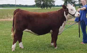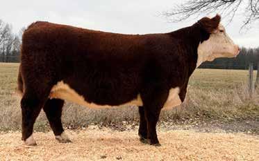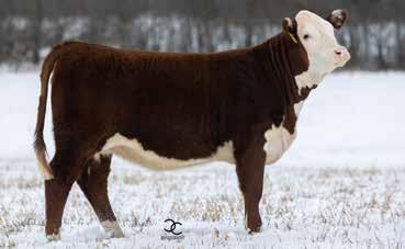 • Sired by our herd bull “The Duke,” from Happ Herefords in Illinois. He’s backed by industry leading genetics. You can’t go wrong with the proven sire lines on her maternal side as well.