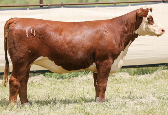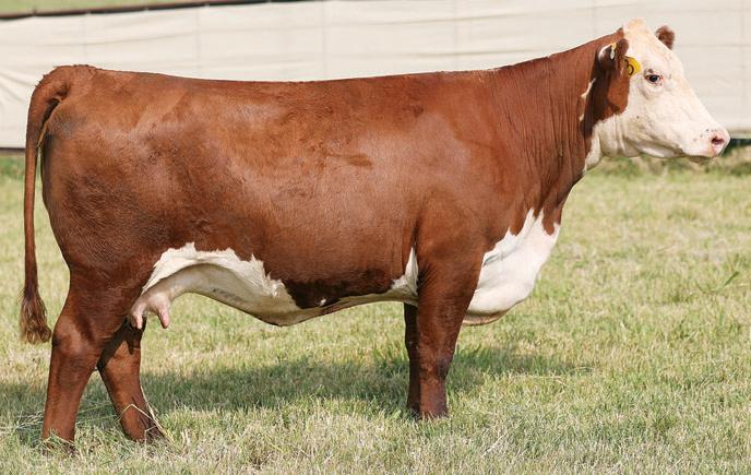 • This female was one of Trigg’s old show heifers from Express Ranches. She is a big bodied female with loads of power and performance. She continues to produce bold progeny that make the cut every time.
