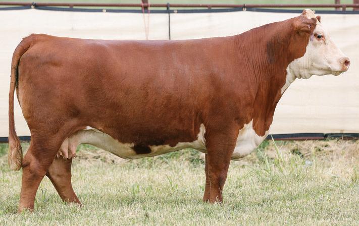 • Stout made and broody Contender daughter with added rib shape, muscle and bone. Bred for a fall calf.