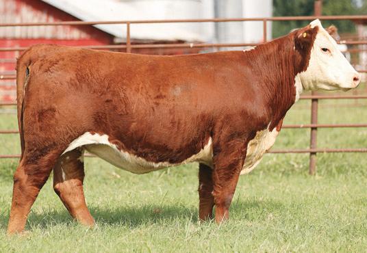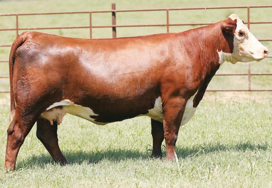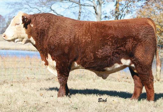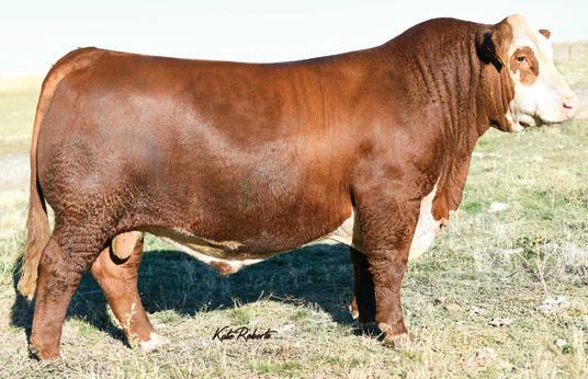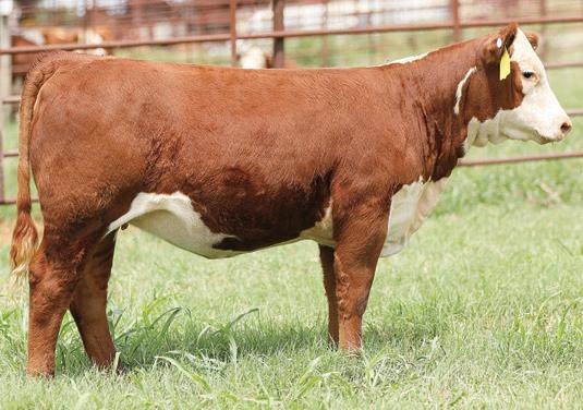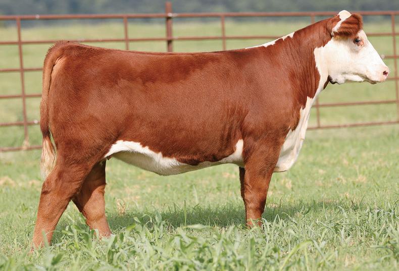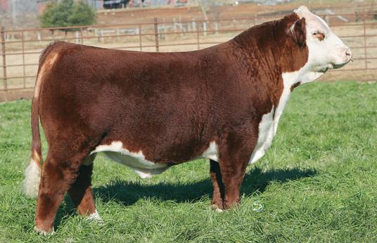 • Individually, Wallstreet is a soggy middled bull with extra muscle shape up high that carries down low through his lower 1/3. Big footed and athletic on the move with a big, square hip and tremendously eye appealing from the side, he has already been shown successfully by Brooklyn Price, winning Supreme Champion Bull at the 2024 Alabama Junior Beef Expo and Grand Champion Bred-andOwned Bull at the 2024 Southeast Regional Hereford Show.