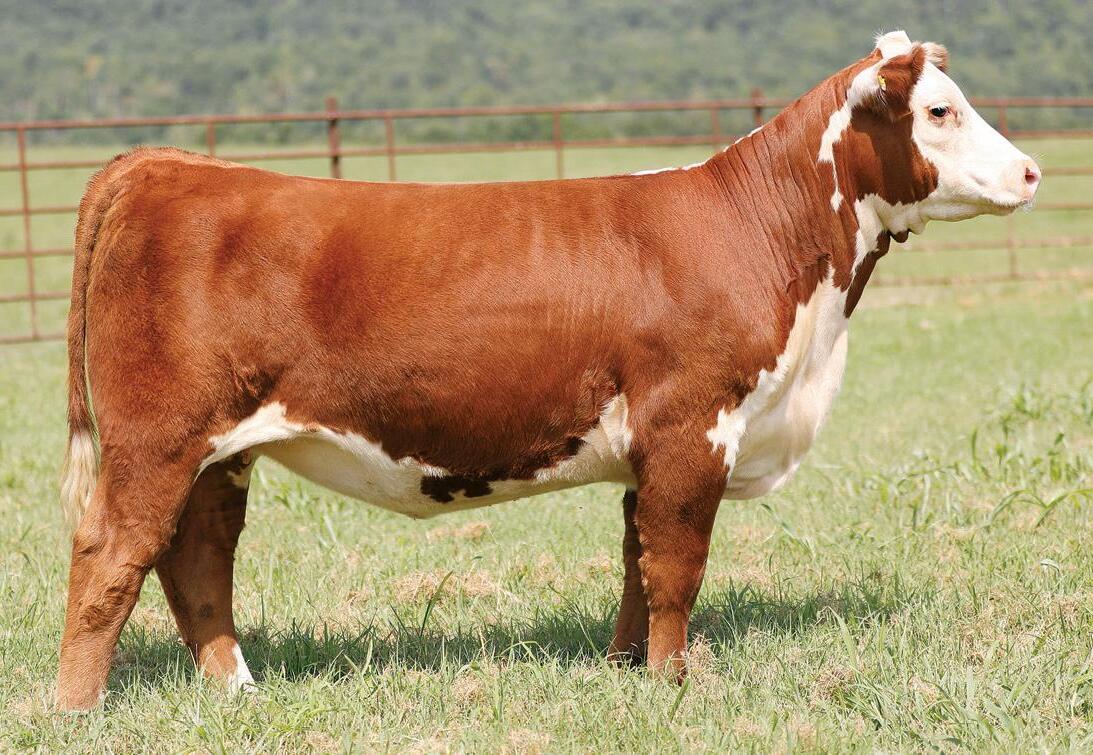 • 438L may be as complete as any Black Hereford female we have offered. She is monster footed, packed full of muscle and shape and still possesses a lethal head and neck set.