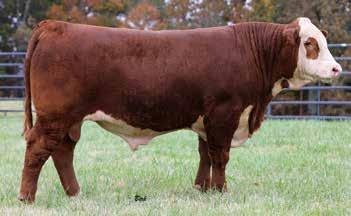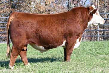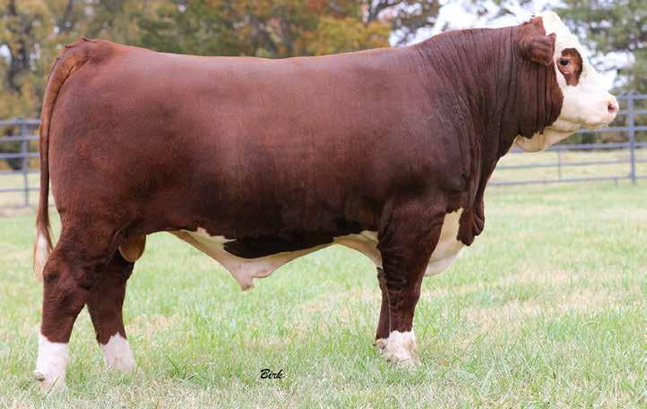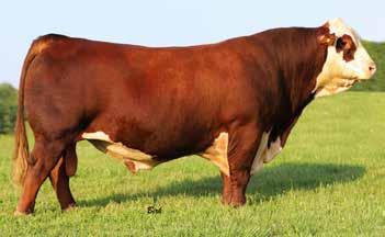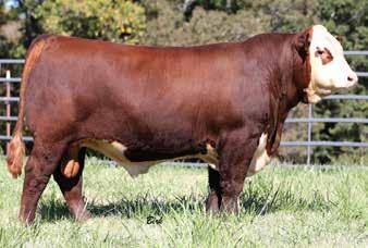 • Gold Rush was the standout of his calf crop and became a roster member at Select Sires. He dominated the most recent Hereford National Reference Sire Program at Olson Ranch. His sons are performance bulls and his daughters will be his legacy as the udder quality and fleshing ability are prevalent and his sustained cow fertility ranking is in the top 1% of the breed.