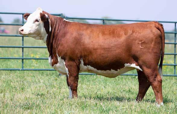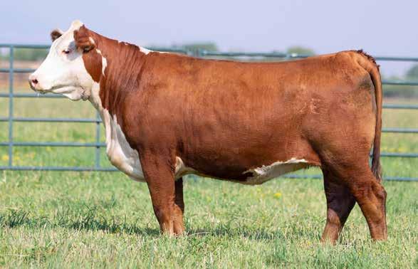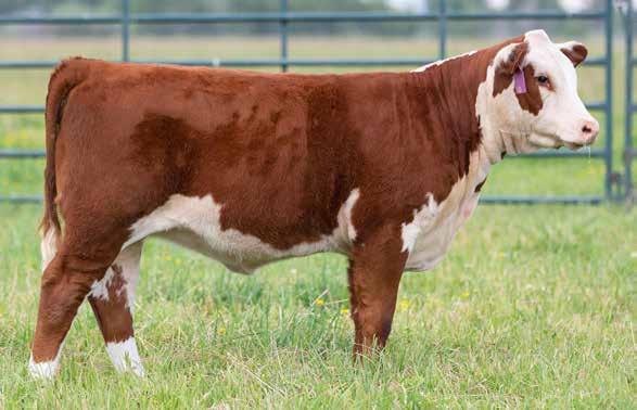 $347 $115 Bred AI on 5-6-24 to SHF Harvest D287 H033 ET, then pasture exposed from 6-11-24 to 7-31-24 to JDH MRD 54E 8G Benton 35K ET. Ultrasound shows safe in calf (heifer) to AI exposure.
