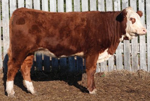 18M has easy calving bred in her mother with Maternal calving ease of 3.6 and milk EPD of 31.1. She is also in the Jr. Hereford lottery program.