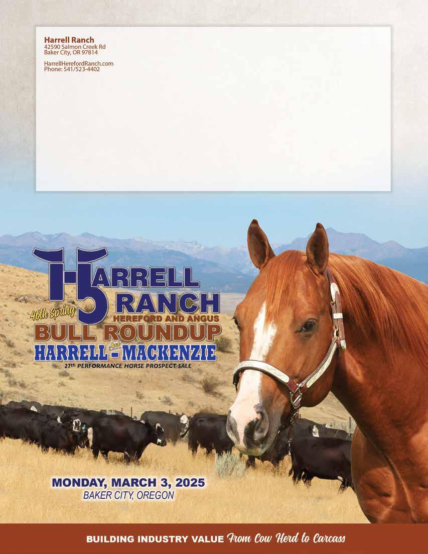 It is with great pleasure and excitement that we welcome you to our 46th Annual Spring Bull Roundup. For over five decades, our mission has remained the same: to offer you top-quality bulls, heifers, and quarter horses that will enhance your herd, improve your bottom line, and ensure your success for years to come. At Harrell Ranch, we know the foundation of any successful partnership is built on trust, communication, and a shared commitment to excellence and we are proud to continue that tradition with you, our loyal customers.