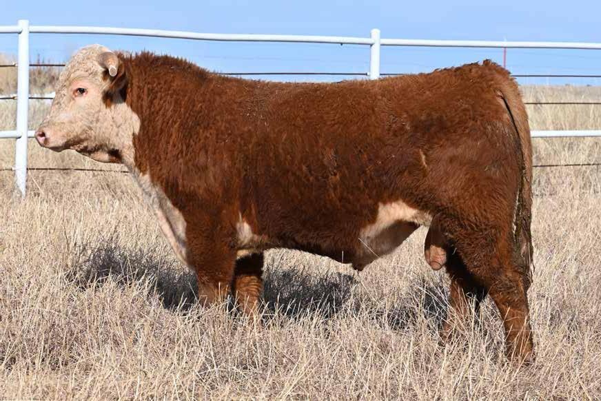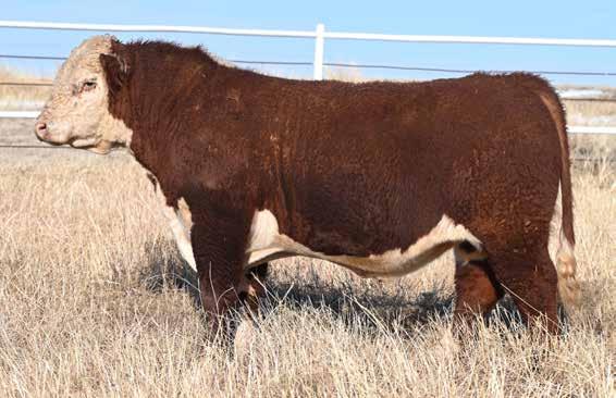 • A very nice horned bull backed by generations of respected Hereford breeders.