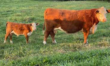 Consigned by James McDonald, 609 North Douglas Street, Shelbyville, IL 62565 HEREFORD INFLUENCE COWS 52-53 • Perfectly uddered black baldy with a black baldy heifer calf at side. All the work is done on this pair, just take them home and put them out to pasture. Heifer calf was born Aug. 20, 2022. • Consigned by Corey Perry, 1265 E 900 N Rd. Tower Hill, IL 62571; 217-294-2934 HEREFORD INFLUENCE COW 54 • Here is a cool looking American Classic calf that is big hipped and super sound. He is a full brother to the heifer calf champion in DuQuoin this summer. He also has a great disposition and is easy to handle for any junior looking for a competitive show steer. • Consigned by Stephen and Amanda Robb, 8517 Press Rd., Kinmundy, IL 62854; 618-267-8096; 618-267-9223 DND - RC ROMAN Pending • Tattoo: LE K30STEER 48 CE BW WW YW DMI SC SCF MM M&G MCE MCW UDDR TEAT CW FAT REA MARB BMI$ BII$ CHB$ Sire -7.5 5.9 60 98 0.3 0.2 7.9 29 59 -1.9 122 1.30 1.20 87 0.007 0.81 -0.02 252 312 128 Dam -4.9 4.1 58 95 0.2 1.3 10.0 23 52 0.5 112 1.10 1.10 63 -0.023 0.35 0.15 262 333 117 ECR WHO MAKER 210 ET {DLF,HYF,IEF,MSUDF} DKF RO CASH FLOW 0245 ET {SOD}{DLF,HYF,IEF} T/R BPF AMERICANCLASSIC 561CET {DLF,HYF,IEF} RV GOLDEN LADY 5064 {DLF,HYF,IEF,MSUDP,MDF} P43645392 TFR PARIS 415 ET LAGRAND RELOAD 80P ET {SOD}{CHB}{DLF,HYF,IEF} CRR D03 COTTON 356 {DLF,HYF,IEF} STAR MKS BURST THE BANK 65Z {DLF,HYF,IEF} STAR KCL BREAKOUT 3T ET {DLF,HYF,IEF} CES GIRLY GIRL 65Z P107 {DLF,HYF,IEF,MSUDF} STAR MKS SHINY PENNIE 144U {DLF,HYF,IEF} P43652560 CES REVOLUTION GIRL K7 ET {DLF,HYF,IEF,MSUDF} MSU TCF REVOLUTION 4R {SOD}{DLF,HYF,IEF} CES JWS VICKY GIRL P606 F11 ET {DLF,HYF,IEF} HEART OF AMERICA HEREFORD ASSOCIATION • FALL SALE 2022 A • • A • • A • • Bred Cows • • A • • A • • A A • • A • • A • • Hereford Influence • • A • • A • • A