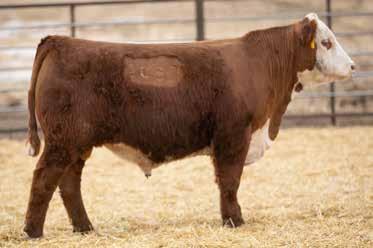 2023 Hoffman Ranch Spring Bull Sale 16 Friday, February 17, 2023 - 12:00 PM CT Hereford Bulls HORNED. Top 4% UDDER, Top 5% TEAT, Top 15% CEM REG: 44380933 DOB: 1/29/22 TATTOO: 220 25 BCC DOMINATOR 619D SR DOMINATE 308F ET CHURCHILL LADY 1162Y ET CL 1 DOMINO 215Z BCC MISS BELL 206Z GOLDEN OAK OUTCROSS 18U DCC 8006 PATTI 4266 ET GOLDEN-OAK FUSION 3S GOLDEN-OAK 60D MALLORY 15M BR DM CHANNING ET C MS PURE GOLD 2003 GOLDEN OAK OUTCROSS 18U H AC MARIANNE 231 ET H VICTORY 600 ET CED BW WW YW MILK M&G CEM SC MARB REA BMI$ CHB$ 0.6 3.5 51 85 17 42 5.7 1.0 -0.02 0.55 303 103 H BL DOMINATE 220 ET ACT BW 90 ADJ WW 625 POLLED. Top 5% MCW, Top 10% SC, Top 10% Stay, Top 15% $BII, Top 15% $BMI, Top 15% M&G, Top 15% WW, Top 20% TEAT REG: P-44357325 DOB: 1/29/22 TATTOO: 2085 26 BCC DOMINATOR 619D SR DOMINATE 308F ET CHURCHILL LADY 1162Y ET CL 1 DOMINO 215Z BCC MISS BELL 206Z GOLDEN OAK OUTCROSS 18U DCC 8006 PATTI 4266 ET NJW 73S M326 TRUST 100W ET BEHM R294 JASMAN102Y NJW 73S W18 HOMETOWN 10Y ET H LADY EXCELL 824 ET BEHM 100W CUDA 504C H MS EXCEL 7945 ET H MS 824 EXCEL 4146 ET CED BW WW YW MILK M&G CEM SC MARB REA BMI$ CHB$ 3.5 3.0 63 96 30 62 4.3 1.5 0.15 0.45 399 103 H WMS DOMINATE 2085 ACT BW 95 ADJ WW 728 LOT 26 SIRE OF LOTS 25-33, LOTS 129-134, LOTS 182-187 Dominate has really bred true to his own phenotype. His sons are long spined and heavy muscled cattle who have a big foot underneath them. He has created quite a following from some of the strictest commercial cattlemen in our region. SR DOMINATE 308F ET REG: 43954712 DOB: 03/15/18 CL 1 DOMINO 215Z BCC DOMINATOR 619D BCC MISS BELL 206Z GOLDEN OAK OUTCROSS 18U CHURCHILL LADY 1162Y ET DCC 8006 PATTI 4266 ET CED BW WW YW MILK M&G CEM SC MARB REA BMI$ CHB$ -2.4 5.1 68 111 29 63 7.0 1.0 -0.04 0.80 286 130 Sire Dam reference sire H MS EXCEL 7945 ET Dam of lot 26, Maternal Grand Dam of lot 152 H MS 824 EXCEL 4146 ET Maternal Grand Dam of lots 26 Maternal Great Grand Dam of lot 152