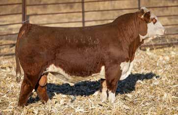 Can be used on heifers or cows. DEFINITE sale highlight!! VERY mellow disposition. This bull is extremely efficient, soggy, and has real substance to him. He is hard to beat on paper and is one of the more unique number bulls to sell this spring. Not only is he highly maternal but he looks like a range bull maker. Top 1% $M, Top 1% $W, Top 2% $C, Top 2% Doc, Top 3% Milk, Top 4% $AxH, Top 4% $AxJ, Top 4% CED, Top 4% REA, Top 5% YW, Top 10% $B, Top 10% $F, Top 10% Angle, Top 10% CEM,