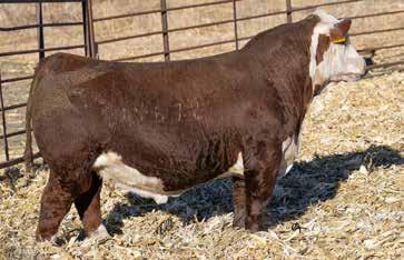 This is a true performing herd bull with great length, true muscle shape, added bone, and big feet. We will continue to use him as he is an outcross horned sire. Owned by Churchill Cattle Co. and Stuber Ranch.