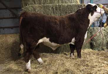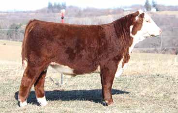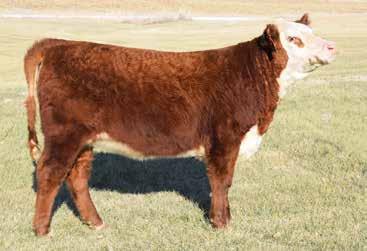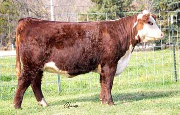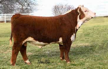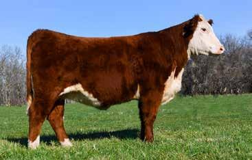 one at the Madison JNHE and we will fit her for you too! • Video available at wildcatcattle.com CE BW WW YW DMI SC SCF MM M&G -5.2 5.8 60 101 0.1 0.5 8.7 27 57 MCE MCW UDDR TEAT CW FAT REA MARB -1.2 128 1.10 1.00 79 -0.002 0.72 -0.07 BMI$ 259 BII$ 317 CHB$ 122 50 44394070 • Calved: 2/12/22 • Tattoo: BE 223K COW R LEADER 6964 {SOD} {DLF,HYF,IEF,MSUDF} HYALITE ON TARGET 936 {SOD} {DLF,HYF,IEF,MSUDC} CHURCHILL RED BARON 8300F ET {DLF,HYF,IEF,MSUDF,MDF} R MISS REVOLUTION 1009 {DOD} {DLF,HYF,IEF} P43938746 CHURCHILL LADY 500C ET {DLF,HYF,IEF} CHURCHILL RED BULL 200Z {SOD} {DLF,HYF,IEF,MSUDF,MDF} HVH OKSANA 4L 33N {DLF,HYF,IEF} CL 1 DOMINO 215Z {SOD} {CHB}{DLF,HYF,IEF,MSUDF,MDF} CL 1 DOMINO 9122W 1ET {CHB} {DLF,HYF,IEF} BJK 215Z CL1 DOM 2009H {IEP} CL 1 DOMINETTE 055X {DOD} {DLF,HYF,IEF} 44213729 BJK MISS RIBSTONE 710E {IEP} BF RED RIBSTONE 301 {DLF,HYF,IEF} KB MISS DOMINO 617 211 {IEP} BJK 8300F RED BARON 223K {IEP} Consigned by BJK Herefords • Don’t miss out on this extremely eye appealing Red Baron daughter. She has 14 EPD categories in the top 25% of the breed, and with her structure and power, she should make a great cow. Her style and profile will turn heads in the show ring as well. CE BW WW YW DMI SC SCF MM M&G 4.9 2.5 66 107 0.6 1.4 19.0 31 64 MCE MCW UDDR TEAT CW FAT REA MARB 5.5 108 1.40 1.40 80 0.058 0.44 0.16 BMI$ 398 BII$ 487 CHB$ 126 51 44367698 • Calved: 2/13/22 • Tattoo: RE 2215 COW CHURCHILL KICKSTART 501C ET {DLF,HYF,IEF,MSUDF,MDF} CHURCHILL RED BULL 200Z {SOD} {DLF,HYF,IEF,MSUDF,MDF} CHURCHILL JUMPSTART 828F ET {DLF,HYF,IEF,MSUDF} HVH OKSANA 4L 33N {DLF,HYF,IEF} P43919914 SR CCC LADYSPORT 2205 Z ET {DLF,HYF,IEF} THM DURANGO 4037 {SOD} {DLF,HYF,IEF} NJW BW LADYSPORT DEW 78P ET {DLF,HYF,IEF} H WCC/WB 668 WYARNO 9500 ET {SOD} {DLF,HYF,IEF} TH JWR SOP 16G 57G TUNDRA 63N {SOD} {DLF,HYF,IEF} LADY BELLA WYARNO {DLP,HYP} H KATHY 668 ET {DLF,HYF,IEF} P43556568 6K MISS JENNIE 107 {DLP,HYP} WS RELOAD 6201 ET WS REAL DUCHESS 3223 {DLP,HYP} HH VIVIENNE {DLP,HYP} Consigned by H&H Cattle Co. • Deep bodied female with good show quality traits and very good maternal traits on both sides of her pedigree. CE BW WW YW DMI SC SCF MM M&G -3.6 4.4 60 103 0.4 0.7 14.9 25 55 MCE MCW UDDR TEAT CW FAT REA MARB -1.4 110 1.30 1.30 66 -0.022 0.44 -0.15 BMI$ 317 BII$ 375 CHB$ 91 52 IOWA SELECT Hereford Sale 2023 17