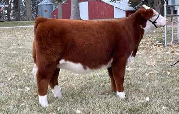 We expect her to be a great brood cow as well as a great junior project if that’s the direction the buyer takes her. CE BW WW YW DMI SC SCF MM M&G 4.6 1.2 56 84 0.1 1.5 20.6 33 61 MCE MCW UDDR TEAT CW FAT REA MARB 0.7 80 1.30 1.30 69 0.008 0.40 0.14 BMI$ 419 BII$ 496 CHB$ 120 47 44354215 • Calved: 1/17/22 • Tattoo: LE 215 COW NJW 79Z Z311 ENDURE 173D ET {CHB} {DLF,HYF,IEF,MSUDF,MDF} KCF BENNETT ENCORE Z311 ET {SOD} {CHB}{DLF,HYF,IEF,MSUDF} LOEWEN GENESIS G16 ET {CHB} {DLF,HYF,IEF} BW 91H 100W RITA 79Z ET {DLF,HYF,IEF,MSUDF,MDF} P43987463 LOEWEN 77 48 MISS 344N 4RB42ET {DLF,HYF} MSU TCF REVOLUTION 4R {SOD} {DLF,HYF,IEF} PCR JACKLYN NIKOLE 344N {DLF,HYF,IEF} DELHAWK KAHUNA 1009 ET {DLF,HYF,IEF} CH ENUFF PROPHET 2913 {DLF,HYF,IEF} DELHAWK KIKI 19B ET {DLF,HYF,IEF} MCR PPF MISS GOLD DOM 206 ET {DLF,HYF,IEF} P43477809 TH 557E 57G BURGUNDY 33N {DLF,HYF,IEF} RU 20X BOULDER 57G {SOD} MEGS 707B BURGUNDY 557E {HYP} PH G16 GIGI 215 ET Consigned by Petersen Herefords • GiGi is a polled January daughter of Genesis. She’s a very complete heifer that moves out free and easy, with big rib shape and a long body. CE BW WW YW DMI SC SCF MM M&G 0.2 4.6 70 114 0.8 1.1 11.1 31 66 MCE MCW UDDR TEAT CW FAT REA MARB 3.8 118 1.10 1.00 81 0.038 0.67 0.15 BMI$ 288 BII$ 373 CHB$ 126 48 44381115 • Calved: 1/31/22 • Tattoo: RE 2K COW VCR 2504 CONVENIENCE 711E {DLF,HYF,IEF,MSUDF} UPS SENSATION 2504 ET {DLF,HYF,IEF,MSUDF,MDF} VCR 711E CONVOY 41H {DLF,HYF,IEF,MSUDF,MDF} VCR 993W RUBY 413B {DLF,HYF,IEF,MSUDF} 44195422 VCR 100W TRUSTMAID 328A ET {DLF,HYF,IEF,MSUDF} NJW 73S M326 TRUST 100W ET {SOD} {CHB}{DLF,HYF,IEF,MSUDF,MDF} DPH REVONA 83N {DOD} {DLF,HYP,IEF} KBCR 49B FEDERAL 634D {DLF,HYF,IEF,MSUDF,MDF} KBCR FEDERAL 49B {DLF,HYF,IEF,MSUDF} B MS EXCEL 0388 {DLF,HYF,IEF,MSUDF,MDF} KBCR LADY 417B {DLF,HYF,IEF} P44218188 H MS EXCEL 7134 ET {MDP} EFBEEF RESOLUTE CEO {CHB} {DLF,HYF,IEF,MSUDF} H MS 824 EXCEL 4146 ET {DLF,HYF,IEF,MSUDF,MDC} SPH MISS CONVOY EXCEL 2K 0388 {DLF,HYF,IEF,MSUDF} Consigned by Sheriff Polled Herefords • This wide ribbed, square hipped Convoy daughter has been on our radar around here since she showed up. She has a really nice front end with a great profile and extra strong across her top. She has a super set of numbers too! Text us for video. CE BW WW YW DMI SC SCF MM M&G 6.7 -0.6 63 91 0.5 0.6 19.9 31 62 MCE MCW UDDR TEAT CW FAT REA MARB 1.6 69 1.40 1.60 74 0.018 0.68 0.06 BMI$ 403 BII$ 480 CHB$ 111 49 Tuesday Evening • February 14, 2023 IHBA Banquet, Program and IJHA Fundraising Auction. To be held at 4-H Building, located on the Fairgrounds. 5:30 p.m. — Social Hour 6:30 p.m. — Dinner followed by Program Includes Hall of Fame inductions and IJHA Fund Raising Auction Wednesday • February 15, 2023 8:00 a.m. — Sale Cattle Preview in Pioneer Pavilion Iowa State Fairgrounds 11:30 a.m. (CST) — Annual Iowa Select Hereford Sale North Annex Sale Ring Schedule of Hereford Events IOWA SELECT Hereford Sale 2023 16