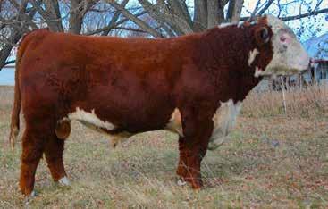 years. CE BW WW YW DMI SC SCF MM M&G -2.2 4.7 62 101 0.0 1.4 11.8 35 66 MCE MCW UDDR TEAT CW FAT REA MARB 1.6 110 1.10 1.20 65 -0.002 0.30 0.06 BMI$ 290 BII$ 362 CHB$ 114 1 Lot 1 | TJ 2296 Double Down 101 44367419 • Calved: 1/29/21 • Tattoo: RE 2104 BULL NJW 73S W18 HOMETOWN 10Y ET {SOD} {CHB}{DLF,HYF,IEF,MSUDF,MDC} SHF WONDER M326 W18 ET {SOD} {CHB}{DLF,HYF,IEF,MDC} CHURCHILL PILGRIM 632D ET {DLF,HYF,IEF,MSUDF,MDF} NJW P606 72N DAYDREAM 73S {DLF,HYF,IEF,MSUDF,MDF} P43703019 CHURCHILL LADY 002X ET {DLF,HYF,IEF,MSUDF,MDF} GOLDEN OAK OUTCROSS 18U {SOD} {DLF,HYF,IEF,MSUDF} CHURCHILL LADY 600S ET {DLF,HYF,IEF} R EXCITEMENT 4356 {CHB} {DLF,HYF,IEF,MSUDF} R NEW YORK 5083 {CHB} {DLF,HYF,IEF,MSUDF} BG 4356 ERIN 16F {DLF,HYF,IEF,MSUDF} R MISS ON TARGET 384 {DLF,HYF,IEF,MSUDC} P43890270 GO MS Y117 DOMINO C91 {IEP} GO 8019 ANDY Y117 {DLF,HYF,IEF} GO MS L18 EXCEL R109 {IEP} HH JW PILGRIM {DLF,HYF,IEF,MSUDF} Consigned by H&H Cattle Co. • Red eyed, deep sided sound bull with calving ease built in. CE BW WW YW DMI SC SCF MM M&G 3.5 2.6 60 95 0.4 1.1 19.6 28 58 MCE MCW UDDR TEAT CW FAT REA MARB 1.9 90 1.40 1.40 71 0.018 0.28 0.17 BMI$ 397 BII$ 481 CHB$ 118 2 Lot 2 | HH JW Pilgrim 44235908 • Calved: 2/11/21 • Tattoo: RE K7/LE 2141 BULL CL 1 DOMINO 420B 1ET {CHB} {DLF,HYF,IEF} CL 1 DOMINO 215Z {SOD} {CHB}{DLF,HYF,IEF,MSUDF,MDF} HH ADVANCE 7088E {CHB} {DLF,HYF,IEF,MSUDF} CL 1 DOMINETTE 7157T {DLF,HYF,IEF} 43786190 HH MISS ADVANCE 4021B {DOD} {DLF,HYF,IEF} HH ADVANCE 0132X {SOD} {DLF,HYF,IEF} HH MISS ADVANCE 2178Z {DLF,HYF,IEF,MSUDF} UPS DOMINO 5216 {SOD} {DLF,IEF} UPS DOMINO 3027 {SOD} {CHB}{DLF,HYF,IEF,MSUDF,MDF} K7 5216 DOMINETTE 1019 {DLF,HYF,IEF,MSUDF} UPS MISS MOM 2756 {DOD} {IEP} 43106354 K7 592 DOMINETTE 707 {DLF,HYF,IEF} CHURCHILL RANCHER 592R {SOD} {CHB}{DLF,IEF} K7 ROCKETTE 8029 K7 7088 ADVANCE 2141 ET {DLF,HYF,IEF,MSUDF} Consigned by K7 Herefords • This quiet, easy going 2-year-old bull is strong hipped and long sided. 2141 is a straight horned 7088 son out of a 5216 daughter. He has hair for a fitter’s dream and the temperament our grandsons love. • IMF ratio 107 CE BW WW YW DMI SC SCF MM M&G 0.8 3.8 53 83 0.1 1.2 16.3 26 53 MCE MCW UDDR TEAT CW FAT REA MARB 2.9 100 1.30 1.30 60 0.048 0.19 0.31 BMI$ 351 BII$ 436 CHB$ 119 3 44302702 • Calved: 2/18/21 • Tattoo: BE 2101 BULL UPS DOMINO 3027 {SOD} {CHB}{DLF,HYF,IEF,MSUDF,MDF} CL 1 DOMINO 9126J 1ET {SOD} {CHB}{DLF,IEF} CHURCHILL SENSATION 028X {SOD} {DLF,HYF,IEF,MDF} UPS MISS DIAMOND 1353 {DLF,HYF,IEF,MSUDF} 43092364 CHURCHILL LADY 7202T ET {DLF,HYF,IEF} GH RAMBO 279R {SOD} {CHB}{DLF,HYF,IEF} CL 1 DOMINETTE 301N {DLF,HYF,IEF} CHURCHILL PILGRIM 632D ET {DLF,HYF,IEF,MSUDF,MDF} NJW 73S W18 HOMETOWN 10Y ET {SOD} {CHB}{DLF,HYF,IEF,MSUDF,MDC} PH 632D PENNY 905 {MDF} CHURCHILL LADY 002X ET {DLF,HYF,IEF,MSUDF,MDF} P44035219 BP 719T MISS TORI 504 {DOD} TH 122 71I VICTOR 719T {SOD} {DLF,HYF,IEF,MSUDF,MDF} DELHAWK CONTESSA 15A ET {DOD} {DLF,HYF,IEF} WILSON’S ABE 2101 {DLF,HYF,IEF,MSUDF} Consigned by Grant Wilson • Wilson’s Abe is a practical, low birthweight bull that will work in any herd. He has been used this past breeding season. Abe will add pounds to your calf crop, and a great chance to purchase a son of 028X. He was a division champion at the 2022 Iowa Preview Show. CE BW WW YW DMI SC SCF MM M&G 5.3 2.7 70 106 0.1 1.6 20.5 49 84 MCE MCW UDDR TEAT CW FAT REA MARB 2.9 79 1.30 1.30 77 0.068 0.36 0.24 BMI$ 435 BII$ 534 CHB$ 139 4 IOWA SELECT Hereford Sale 2023 2