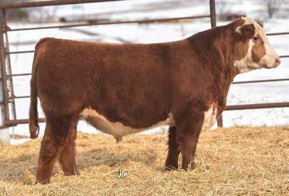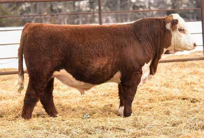• A true calving ease bull that exhibits excellent depth of body and structural correctness. His sire, Big Jon, has been our ‘go to’ heifer bull at the ranch. The dam is a three-year old with an excellent production record on her first two calves. This bull has a wonderful disposition!