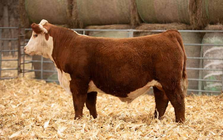 We bought this elite dam from Atkins Herefords. This bull is a moderate made meat wagon! Top 5% for WW, YW, SC. Tyler is high on this guy.