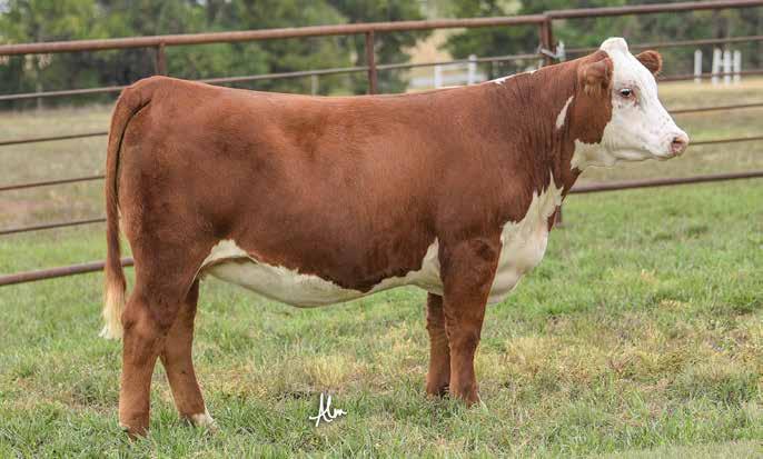 Her dam 7603 has proven to be a very valuable donor! In 2022 she mothered the high selling bull in the Denver Sale, KJ 7603 Venture 309J, selling to Larson Hereford Farms, WI and Phil Barnett, NZ. Venture has calves in the US, CAN, NZ, and AUS. C&L Herefords, purchased a full sister to lot 37 in last year’s Chosen sale at a commanding figure. Walker Polled Herefords purchased another full sister the year before in the Chosen Female Sale. Sanders Ranch purchased a full sister to Venture in past sale.