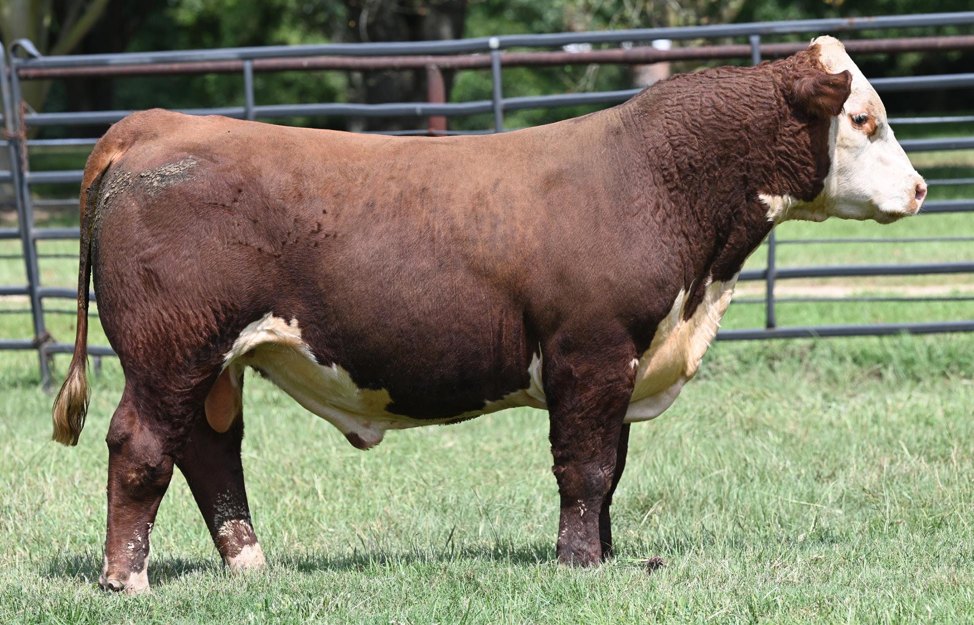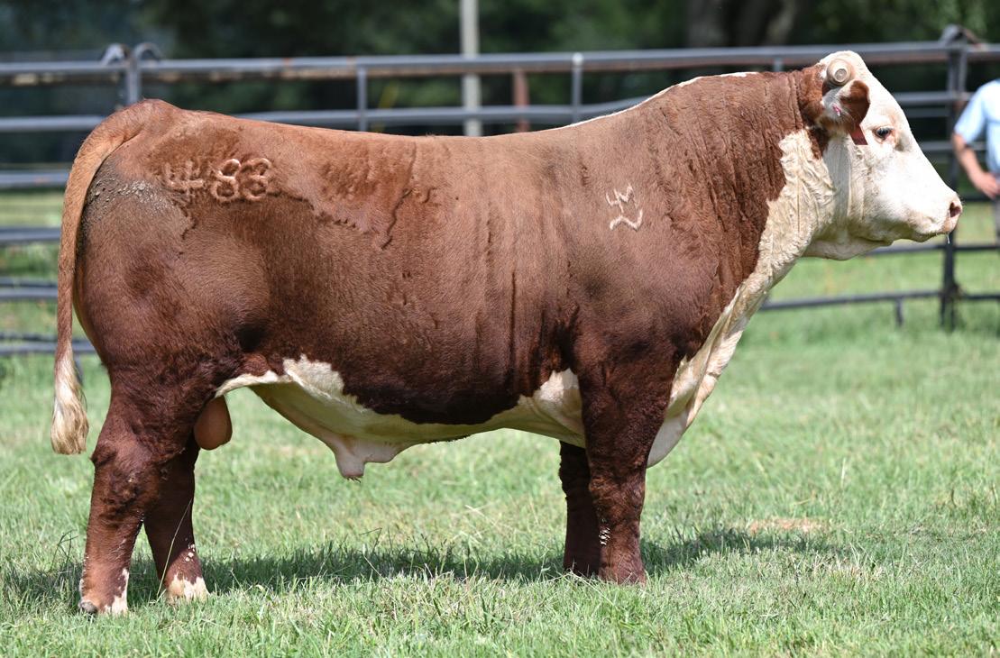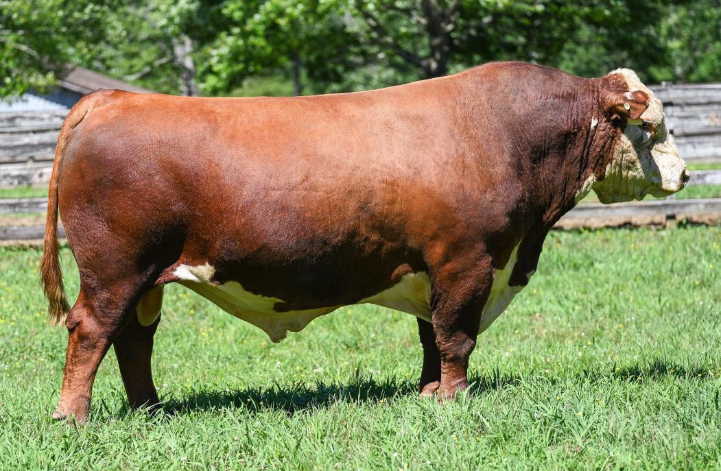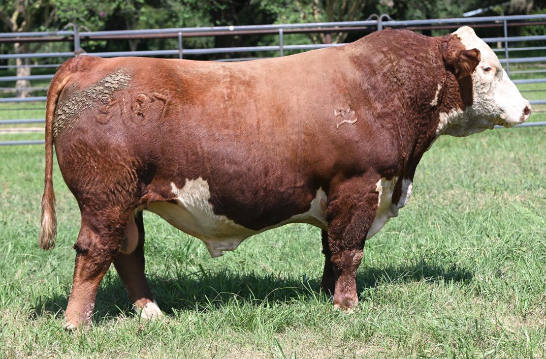 • 476 ranks in the top 6% for WW, 11% for YW, 7% for SCF, 10% for MG, 4% for TEAT, 1% for REA and CHB, 3%for MARB, BMI & BII. He ratioed a 102 for WW & YW. His dam records a milking ratio of a 113 for her daughters. A paternal brother sold to Barnes Herefords, GA for $9,500 from our 2024 Fall Sale.