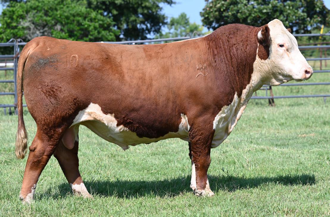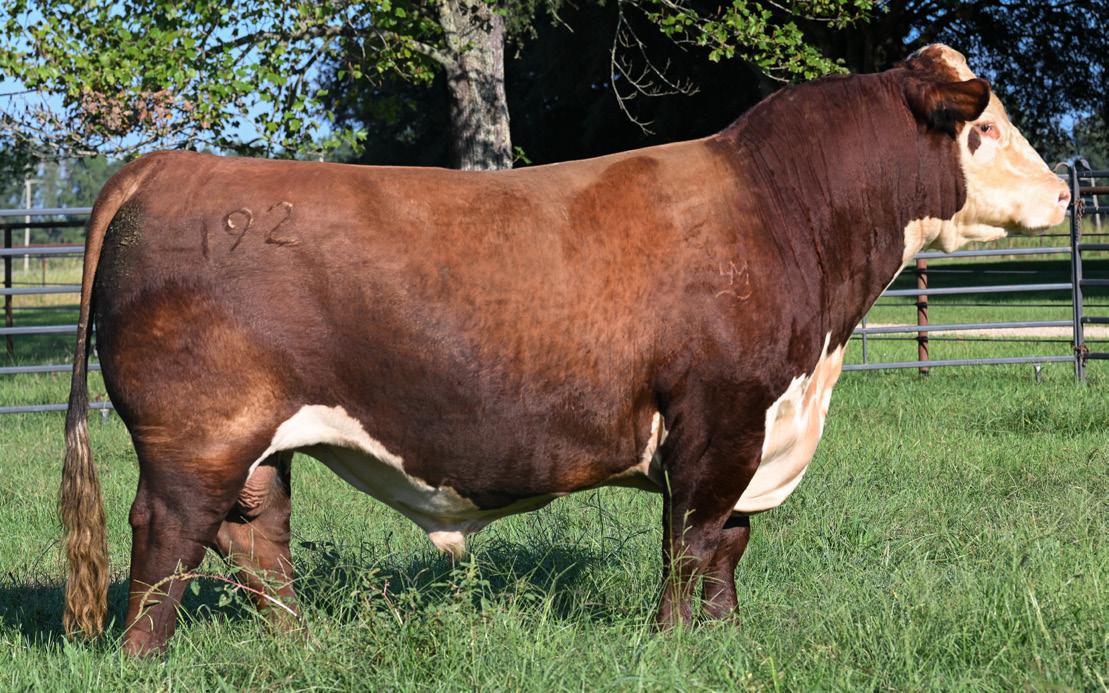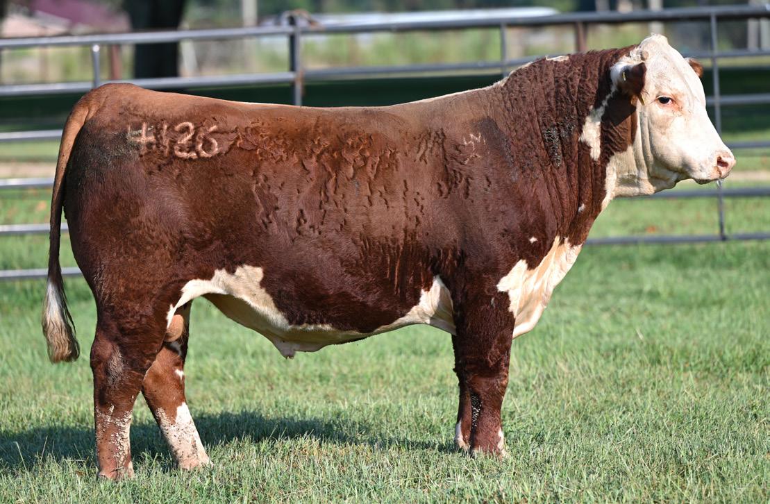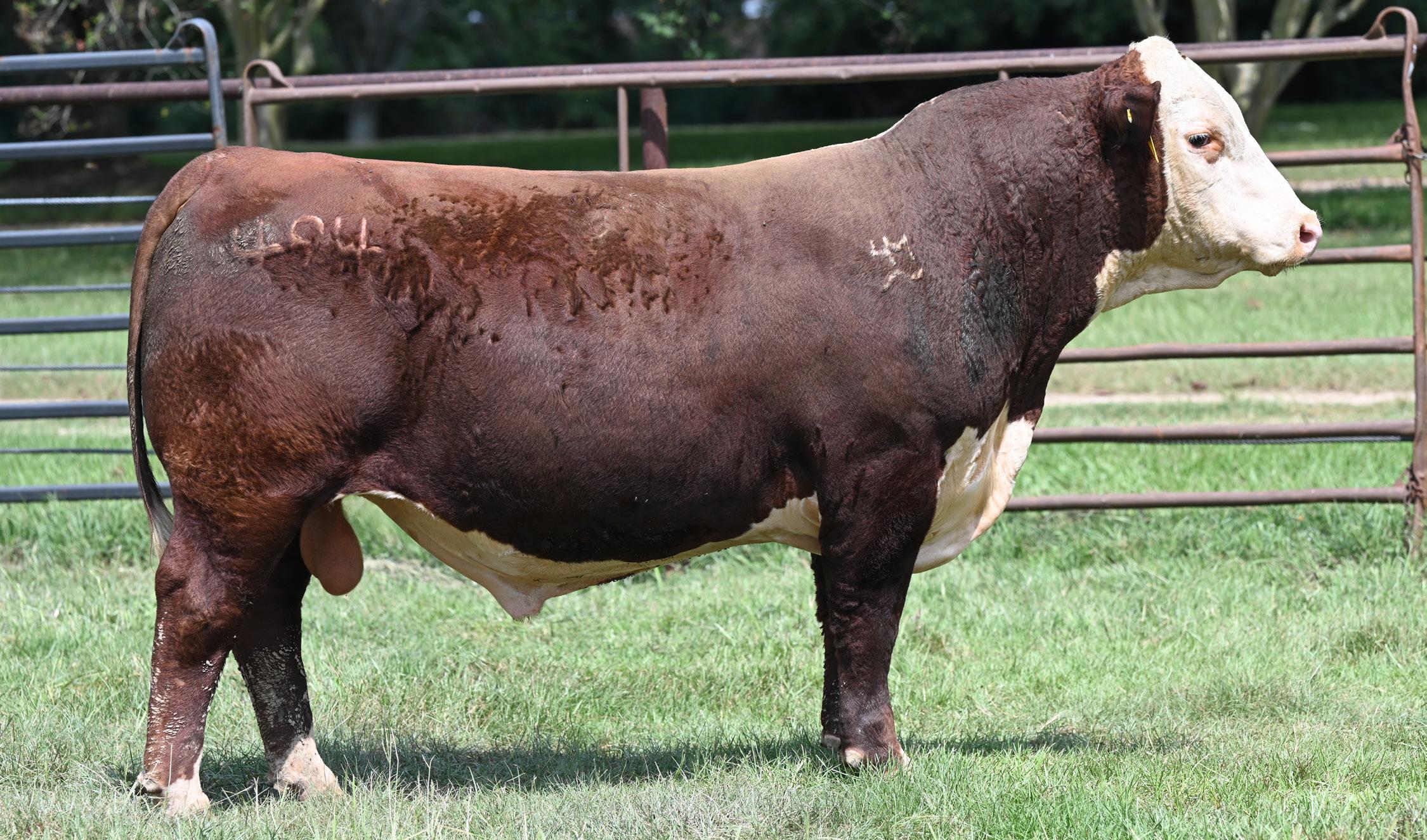• 476 ranks in the top 6% for WW, 11% for YW, 7% for SCF, 10% for MG, 4% for TEAT, 1% for REA and CHB, 3%for MARB, BMI & BII. He ratioed a 102 for WW & YW. His dam records a milking ratio of a 113 for her daughters. A paternal brother sold to Barnes Herefords, GA for $9,500 from our 2024 Fall Sale.
