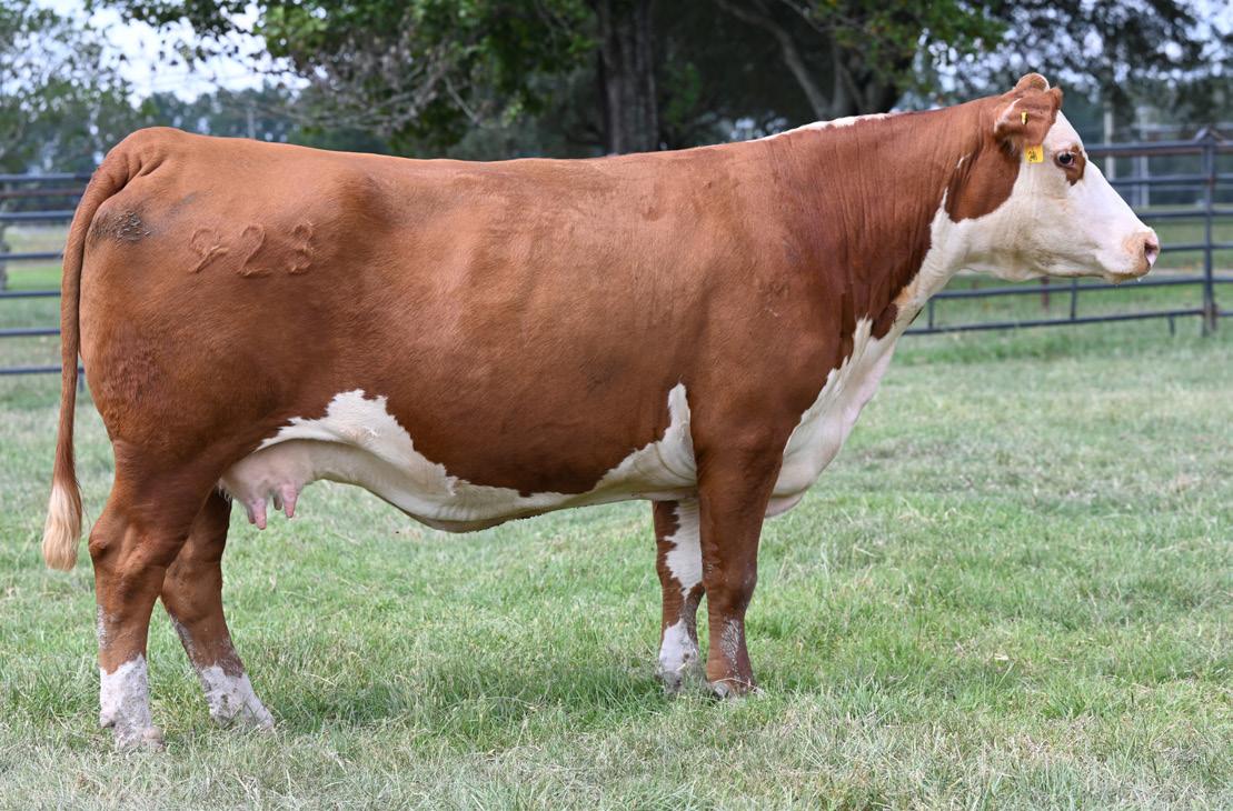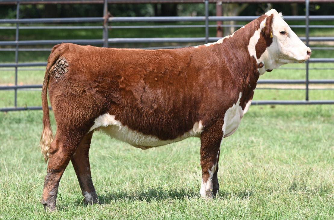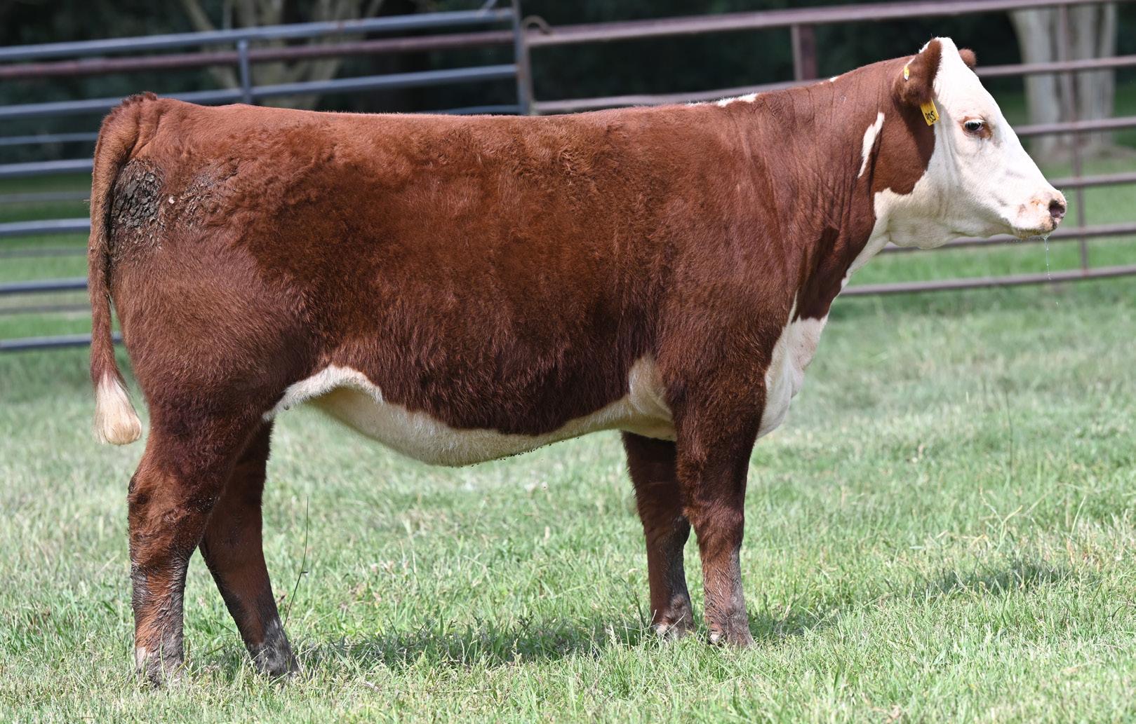 • This girl is a looker! She has plenty shape and body to go along with those good looks. She will not be hard to find on sale day. She ranks in the top 25% for SCF. Her dam sells as Lot 130.