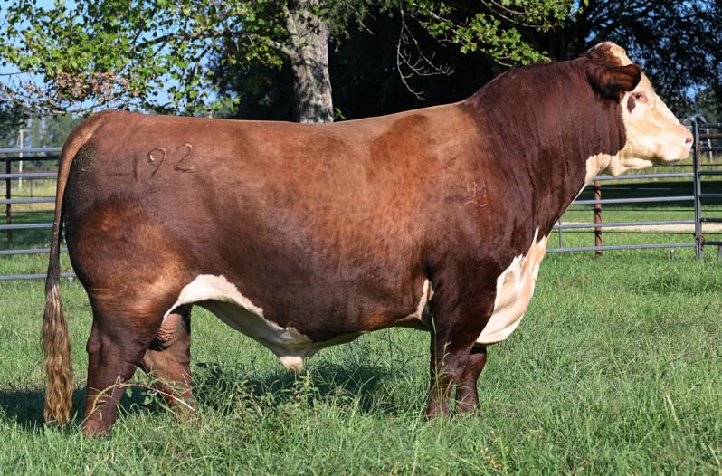 • A really neat looking 192 daughter. Big boned with plenty of stature. Double red eyed and short marked. She is a paternal sister to Lot 151. She ranks in the top 17% for DMI. She ratioed a 119 for WW.