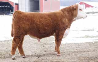 • Debby displays the kind of true Hereford demeanor and characteristics breeders look for — feminine, sound and functional. Out of a proven, productive dam that consistently performs for us year after year, she shows many similarities to her dam and offers strong maternal potential.