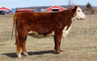 • L3 is exactly the type of cow we have aimed to produce in our Hereford program. She has a beautiful udder, great feet and an extremely angular and feminine shape. Her dam and grandam are still high quality and are reliable consistent producers in our herd. Her Houston sired heifer calf sells as Lot 36A.