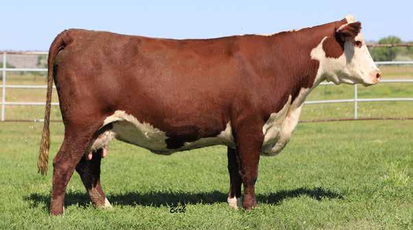 • A very feminine Cowboss 199B daughter that is super milky. All you have to do is look at her bull calf at side and you know she can raise a stout one. Bull calf is being retained for DCR’s 2025 bull sale.