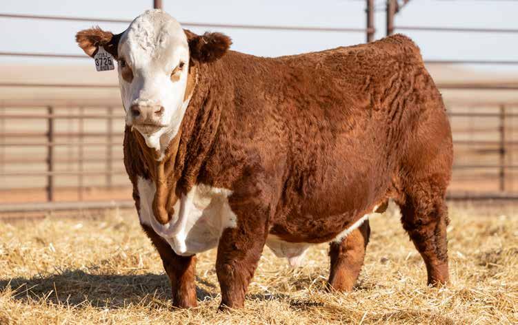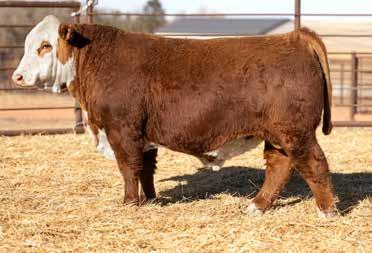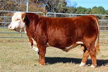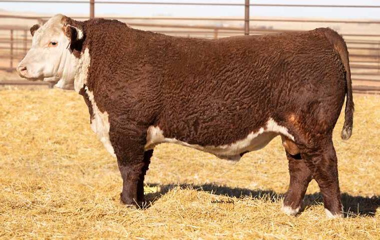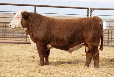 The Beefmaker sire group will certainly catch your eye in this year’s sale. 250G is a proven herd sire that adds performance and carcass to every calf. While judging the National Pen Show in Oklahoma City, this bull walked into the ring and I knew we had to own him. He leads the Hereford breed in 10 traits and has as much style, power and eye-appeal as any bull walking. His offspring are direct replicas of what we hoped he would produce and his genetics are certain to work in any program in the country. Owned with Stuber Herefords, ND. 4 sons sell.