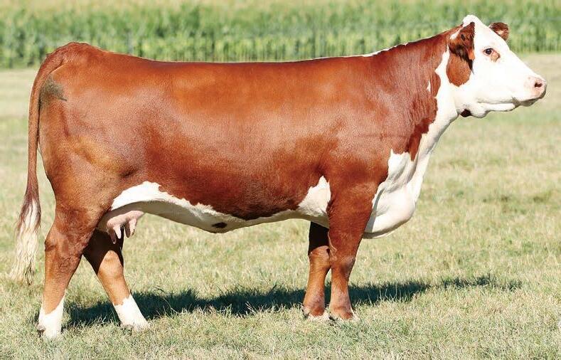 +7.9 –0.4 +61 +94 +1.0 +32 +63 +1.4 +1.3 +.47 +.16 +454 +111 Emily is the type of heifer that we wish we could keep, but we are committed to offering our very best. Tey don’t get any deeper bodied or soggier made than this one. A Mandate out of an 84F two-year-old that knocked it out of the park her first try, 3003 is a donor cow prospect and the kind that will produce herd bulls and elite females. She has all the niceties, being dark red with added pigment and exceptional data that ranks her above breed average in 15 traits, including Top 5% for BW; Top 6% for Udder, BII and BMI; and Top 15% for CED. Granddam sells as Lot 24.