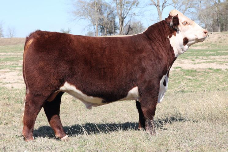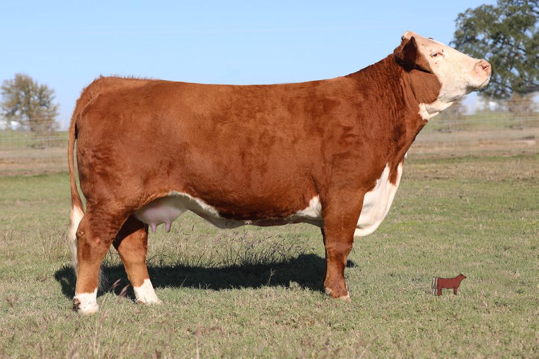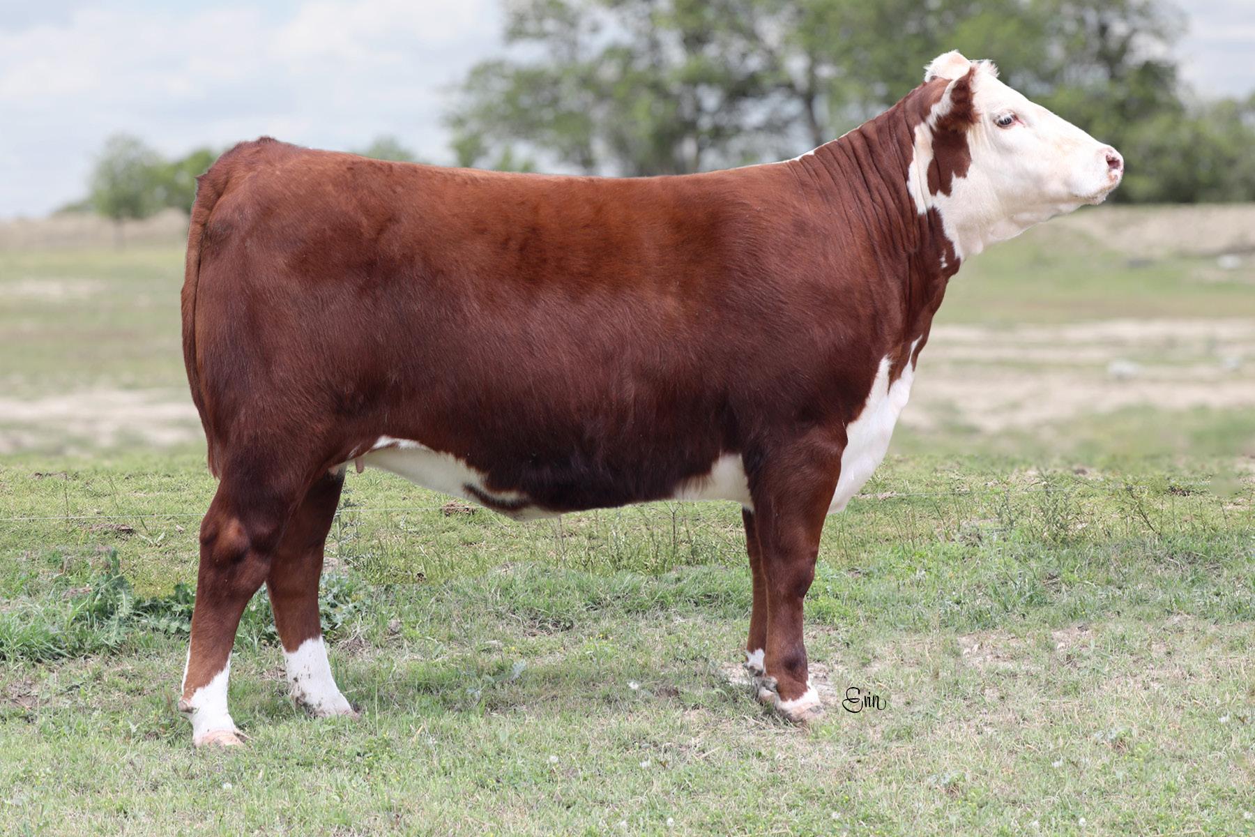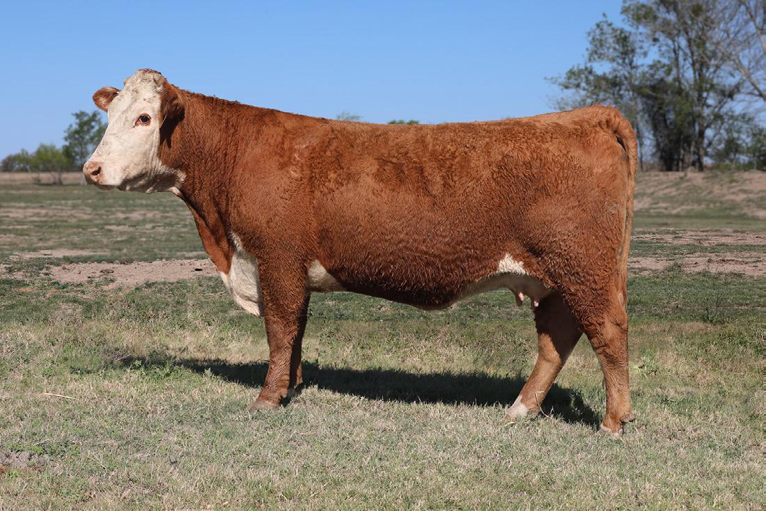 “Ol Mayble” she has been a special one since day one. In the summer of 2014 Kason Fitzpatrick who was the Herdsman at Churchill at the time called and said he had one for Devon. When we got up there to look we knew she needed to come to Texas. Mayble might have been ahead of her time in terms of Body and Mass. Her mother is the Great 78P cow, a past High Seller from the NJW program. Mayble is sired by Stockman who was a full brother to Miles Mckee. She has bred well to everything we have mated her to and consistently produces quality offspring. At 12 she is still sound as can be and I hope we have several years left in her.
