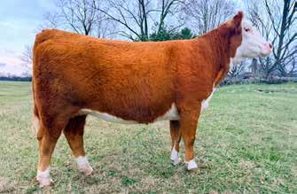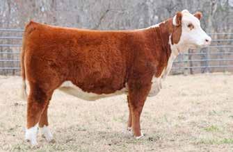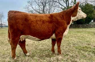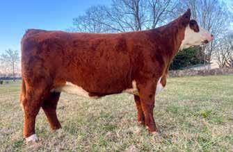 • Rebekah is an ideally marked heifer for today’s industry, dark red and double ring-eyed. Rebekah has an incredibly gentle disposition. Her mother was purchased from Coley Herefords as a show heifer. Rebekah boasts nine EPD traits that are in the top 25% for the breed, so she will be fun to breed for years to come.
