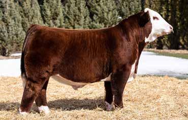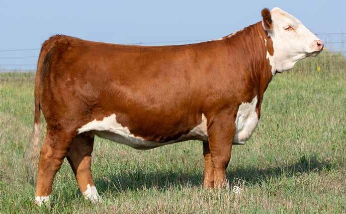Gunsmoke is the 2025 Denver National Champion Bull and the American Hereford Association 2024-2025 Polled Show Bull of the year. His first calf crop has been exceptional, and the calf reports across the country have been exciting. Gunsmoke is siring calves that are vigorous at birth, have big time performance, and are high quality. His high fertility and ability to combine a tremendous set of EPDs with his phenotype is unmatched. The structural integrity he is adding to cattle is second to none. Gunsmoke is siring rugged, stout bull calves, and females that will work no matter what your focus is. Bid with confidence!