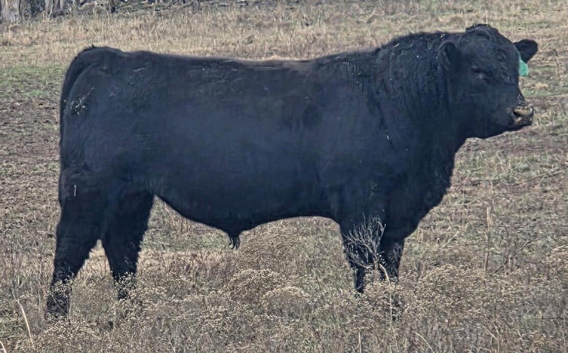 A fall born calf, but don’t let his age scare you. This young bull was to be our futurity entry for the Breeders Choice Balancer Bull Futurity, but the fall got away from us so he never was halterbroke or made it to the show ring. Hes loaded with calving ease, his cow is an absolute rockstar, perfect uddered. Homo black and polled by pedigree.