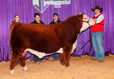 The Donor Dam 1027 “Scout” was Division Champion or Reserve Division Champion at 5 National Hereford Shows (JNHE, OKC Cattleman’s Congress, National Western Stock Show) in her 20222023 show career Scout completed her show career as the Champion Hereford female at the 2023 Wisconsin State Fair Junior show The service sire HL Stimulus 2108 ET has sired Champions at all levels Stimulus complements his elite phenotype with strong Carcass EPDs