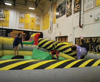 1. Sliding, junior Lindsay Barash goes head first down the end of the obstacle course. Students received fake money for participating in games and activities. “I liked racing my friends on the course and how we got paid for being active,” Barash said.