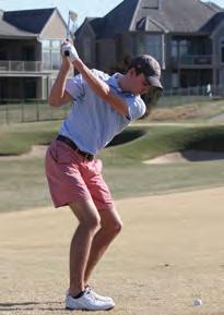 3. Swinging a club, junior Michael Secrest competes in a golf tournament. He has been