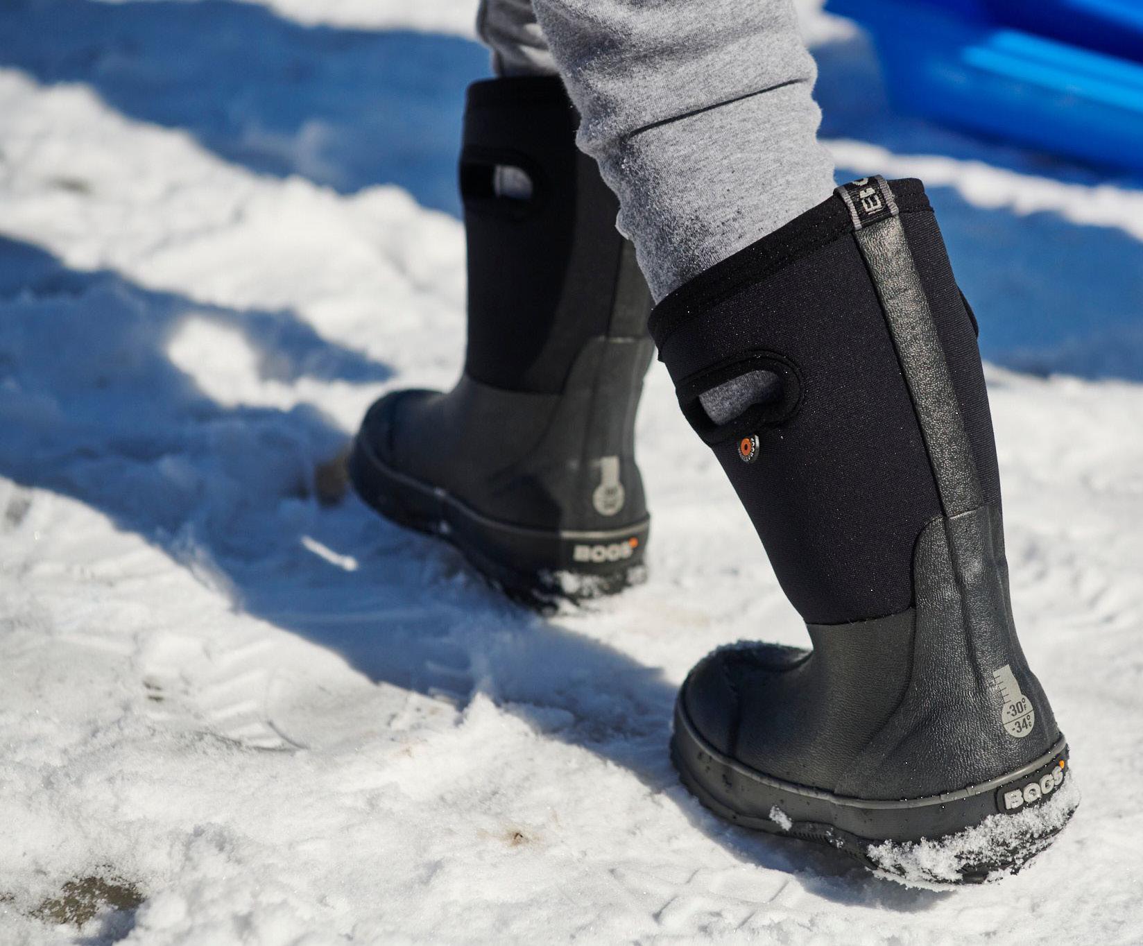 100% Waterproof. Constructed with 5mm Neo-Tech™ waterproof insulation. Bogs Max-Wick evaporates sweat to keep feet dry. BLOOM eco-friendly, algae-based EVA footbed that helps clean polluted water habitats. Easy on handles. Reflective temperature rating mark on heel. Comfort rated to -4°F/-20°C. Circumference: 9”. Height: 9”.