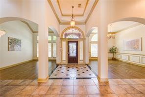 Welcome home to Long Meadow Farms! This residence sits on an expansive 14,000+ sq. ft. lot with two covered patios for outdoor leisure. No rear neighbors provide added privacy. Custom lighting illuminates spacious rooms throughout this home, including a hand-painted mural in the owner's retreat. Enjoy generous-sized bedrooms with ample closet space. Relax in the family room with its soaring 24 ft. ceilings. Custom drapery adorns large windows throughout. Entertain in the game room just steps away from the raised