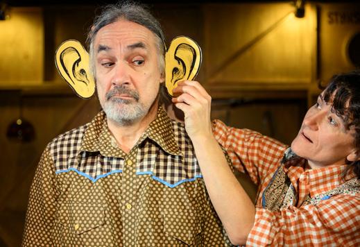 Dukketeater i verdensklasse, hvor grydeskeer forvandler sig til prinsesser, og gamle dåser springer ud som riddere. Med fagter, mimik, lyde og stemningsfuld jazz leverer de to dukkeførere en intens Shakespearefortælling i mange lag. Forførelse, grådighed, kærlighed og først og fremmest en drabelig kamp om arveretten til Riget.