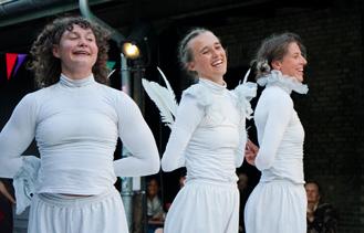 Tre skønne engle klækker fra ét æg. Med skæve vinger, stædige ben og masser af hjerte danser de ind i livet. Her mødes moderne dans, dristig akrobatik og teatralsk charme i en hvirvelvind af sjove sammenstød og store følelser. ENGLEAGTIG er nærvær, charme, gak og glimt i øjet – en himmelsk oplevelse i børnehøjde.